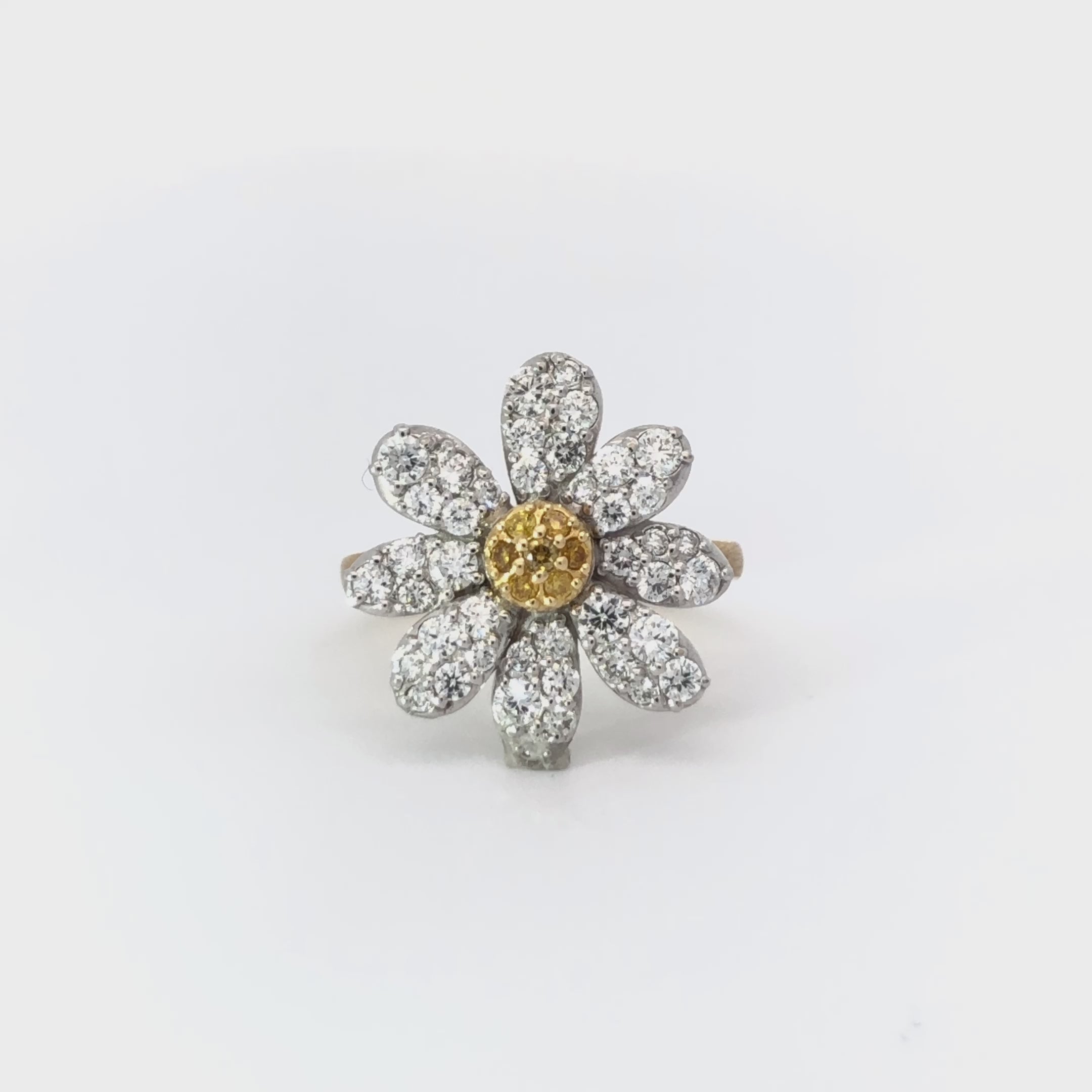 純白の輝きをもつダイヤモンドと、それを引き立てる天然イエローダイヤモンド。フルールのために集められた49石は、複雑な設計を実現するため、徹底したサイズ管理と品質へのこだわりをもって用意されました。瑞々しいほどの輝きをお楽しみいただけます。